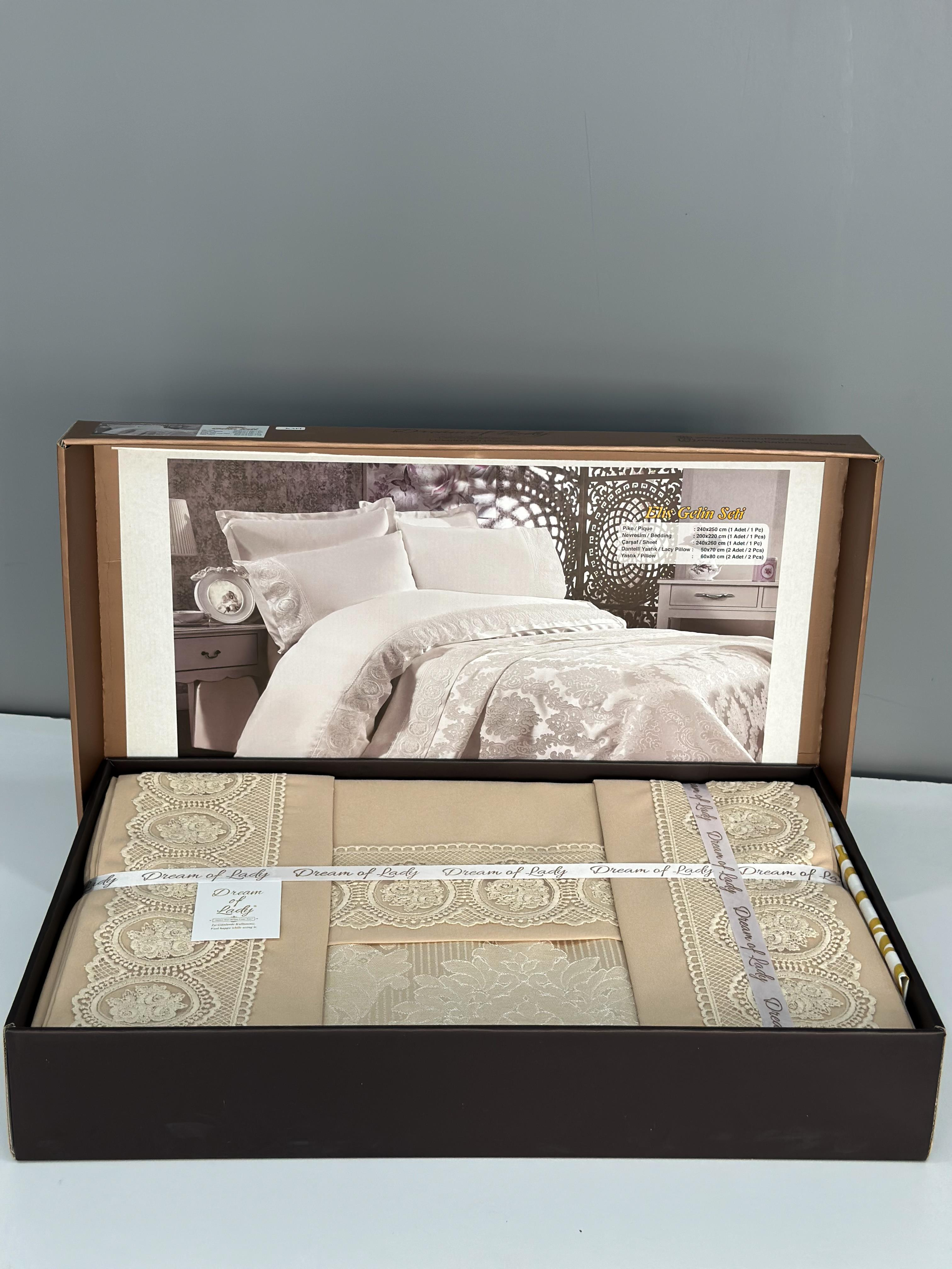 Zarif tasarımı ve şık detaylarıyla Dream Of Lady Nehir Gelin Seti, çeyizinize lüks bir dokunuş katar.