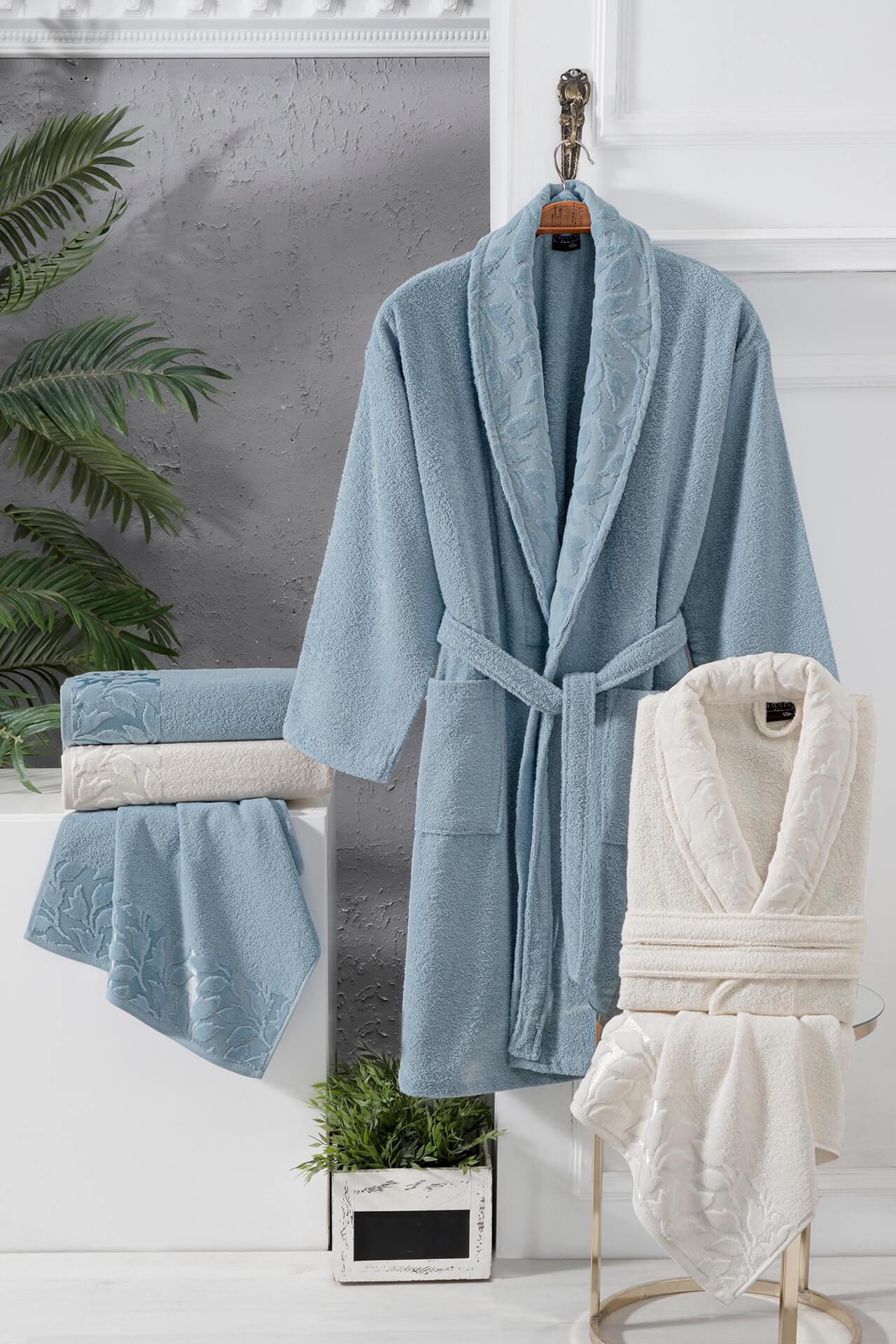 2 Adet Bornoz, 2 Adet Baş Havlusu, 2 Adet Banyo Havlusu