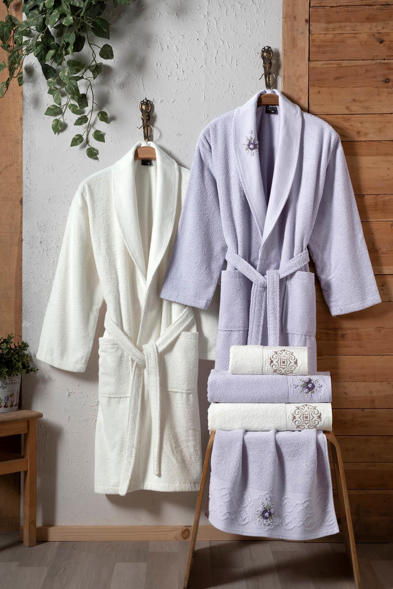 Dikkat çekici özel tasarımı ile çeyizinizin en şık parçalarından biri olacak bu ürün; yıpranmaya karşı dayanıklı ve sağlamdır. Set olarak satılmaktadır. Kutu İçeriği: 2 Adet Bornoz, 2 Adet Baş Havlusu, 2 Adet Banyo Havlusu Kutu Özelliği: Pencereli Karton Kutu Ürün Boyutu: El Havlusu: 50x90 cm, Banyo Havlusu: 70x140 cm Malzeme Bilgisi: %100 Pamuk Bakım Bilgisi: 30 derece makinede yıkanabilir. Trikloroetilenden başka her türlü solventle kuru temizleme yapılabilir.