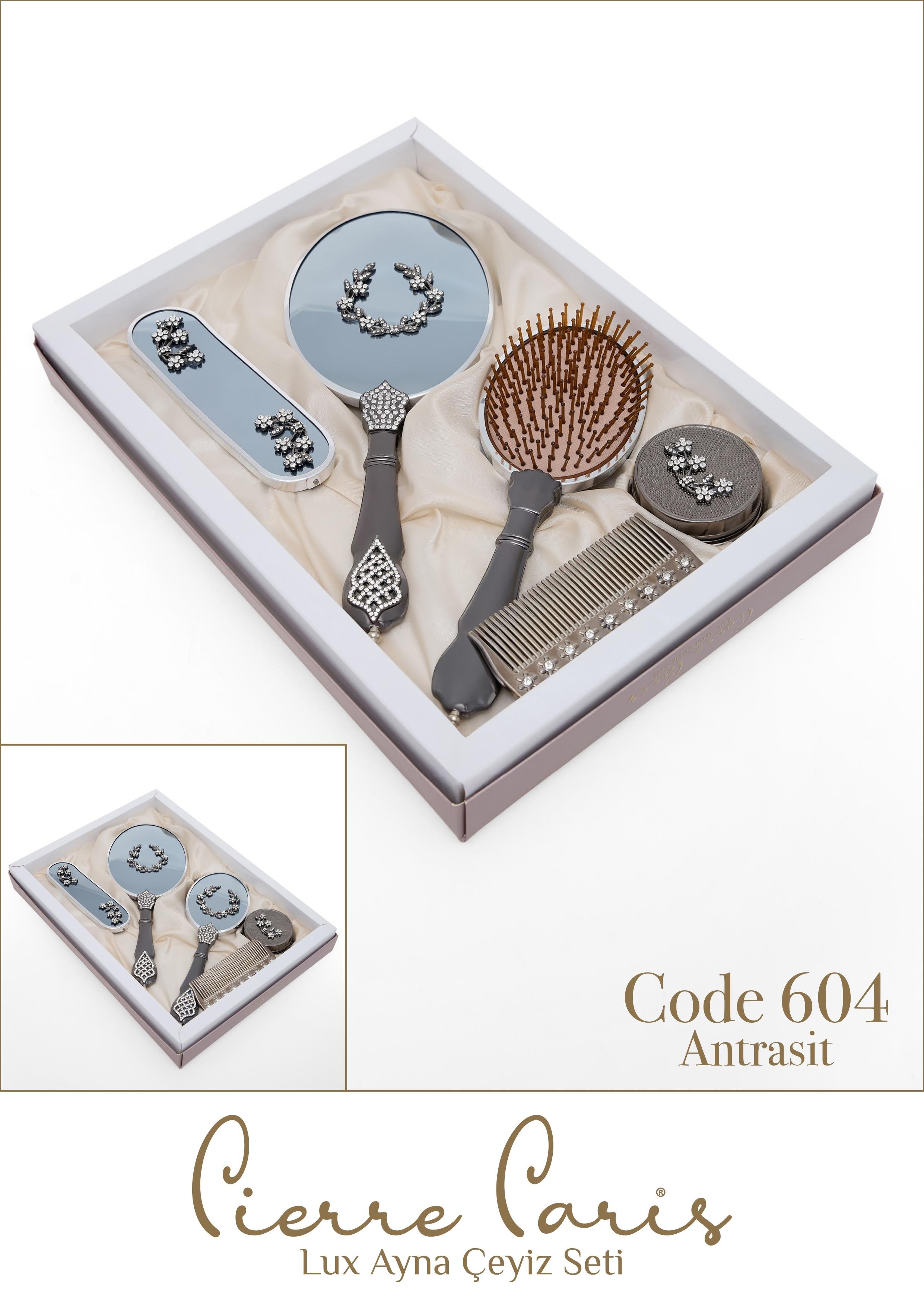 Set içerisinde yer alan ayna, tarak, fırça ve kutu; hem dekoratif görünümü hem de günlük kullanıma uygun pratikliğiyle dikkat çeker.