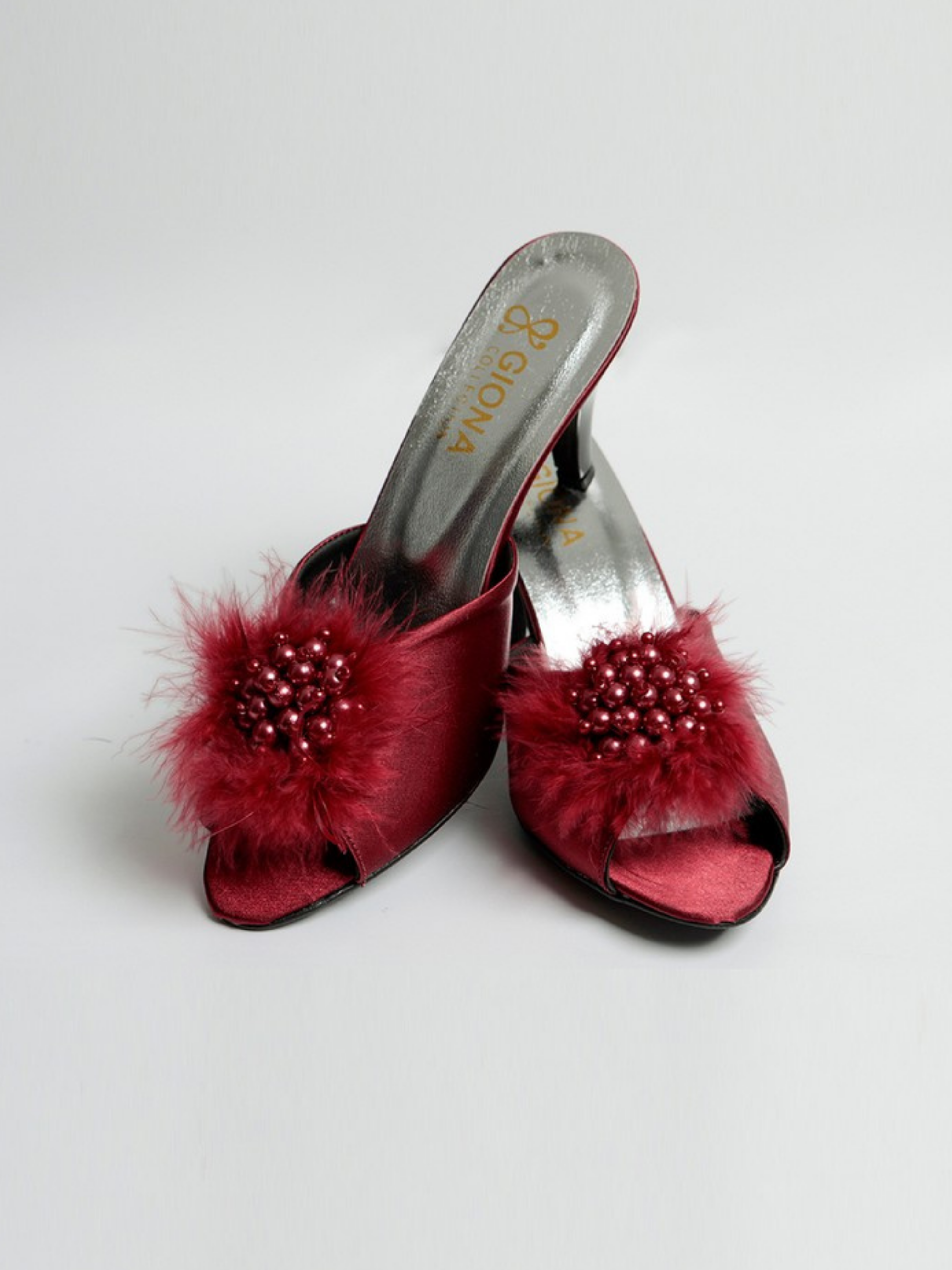 Marpiella taş detaylı topuklu terlik, şık tasarımıyla çeyiz ve özel günler için ideal bir tercihtir.